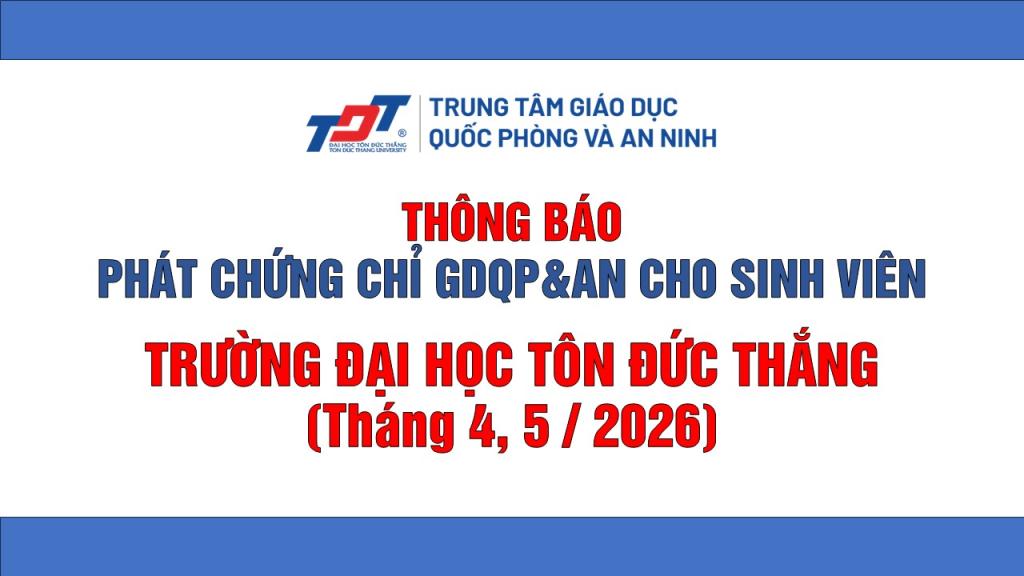 block_builder Tin tức Hoạt động chung Tin tức | 11/03/2026 Khai giảng khóa học cho sinh viên Trường Cao đẳng Công thương Việt Nam và Trường Cao đẳng Giao thông vận tải Trung ương III Tin tức | 08/03/2026 Trung tâm Giáo dục quốc phòng và an ninh Trường Đại học Tôn Đức Thắng tổ chức gặp mặt kỷ niệm ngày Quốc tế Phụ nữ 08/3 Tin tức | 25/02/2026 “Đảng viên Chi bộ Khối Thể chất – Quốc phòng tham dự Hội nghị toàn quốc nghiên cứu, học tập, quán triệt và triển khai thực hiện Nghị quyết số 79-NQ/TW và Nghị quyết số 80-NQ/TW của Bộ Chính trị” Xem thêm Hoạt động sinh viên Hoạt động sinh viên | 04/02/2026 Sôi nổi Hội diễn văn nghệ tổng kết khóa học GDQP&AN của sinh viên Phân hiệu Trường Đại học Giao thông Vận tải tại TP. Hồ Chí Minh (Đợt 2) Hoạt động sinh viên | 01/02/2026 HĐPT cuối tuần của siinh viên Phân hiệu Trường Đại học Giao thông vận tải tại TP. Hồ Chí Minh (đợt 2) Hoạt động sinh viên | 31/01/2026 Tết sẻ chia – lan tỏa yêu thương qua chuyến đi xuân tình nguyện Xem thêm Thông báo Thông báo | 11/03/2026 [03.2026] Thông báo Về việc phát chứng chỉ GDQP&AN cho sinh viên Trường Đại học Mỹ thuật TP. HCM (HCMUFA) Thông báo | 27/02/2026 [02.2026] Thông báo Về việc phát chứng chỉ Giáo dục quốc phòng và an ninh cho sinh viên Trường Đại học Công nghệ Sài Gòn (STU) Thông báo | 26/02/2026 [02.2026] Thông báo Về việc phát chứng chỉ Giáo dục quốc phòng và an ninh cho sinh viên Trường Đại học Công nghệ Đồng Nai Xem thêm